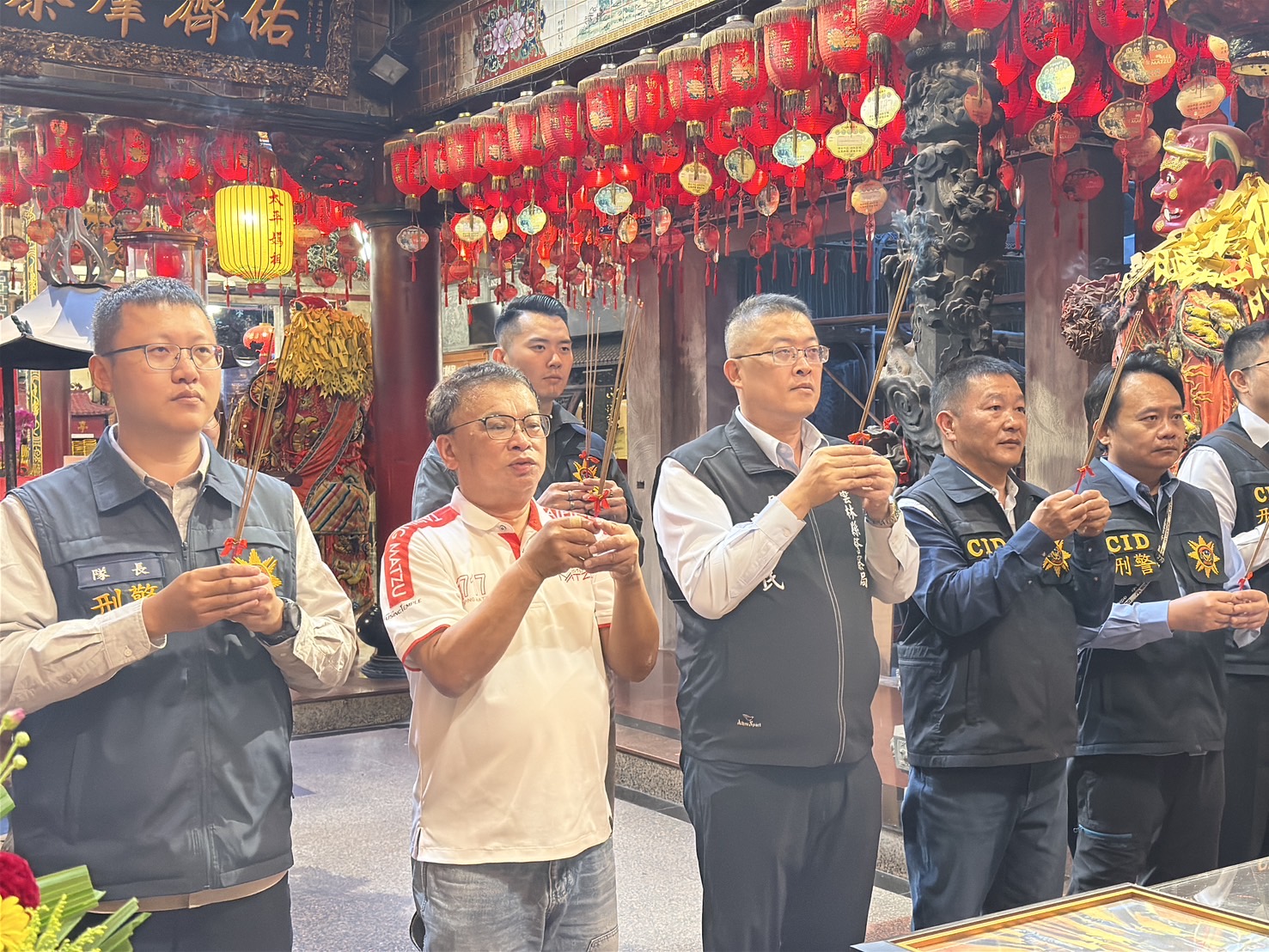 雲林縣警察局 李建民局長率偵查第三隊蔡岡宏隊長、鄭鉛森小隊長等警察同仁專程蒞臨本宮參拜 #西螺媽祖太平媽 ,虔備鮮花、珍饈、財帛三獻之禮叩謝神恩護佑日前隊內查獲市值逾10億元之戶外溫室大麻園一案,避免對社會治安造成嚴重危害