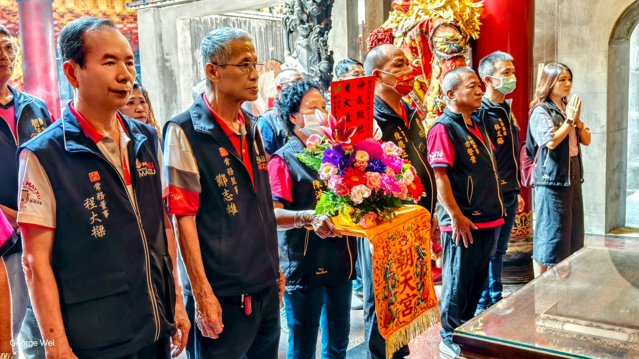 副主任委員 陳金德、宮主 陳洪謝榴率眾執事人員、爐下眾善信人等一同虔備鮮花、素果、珍饈、財帛之禮專程蒞臨本宮參拜、交誼