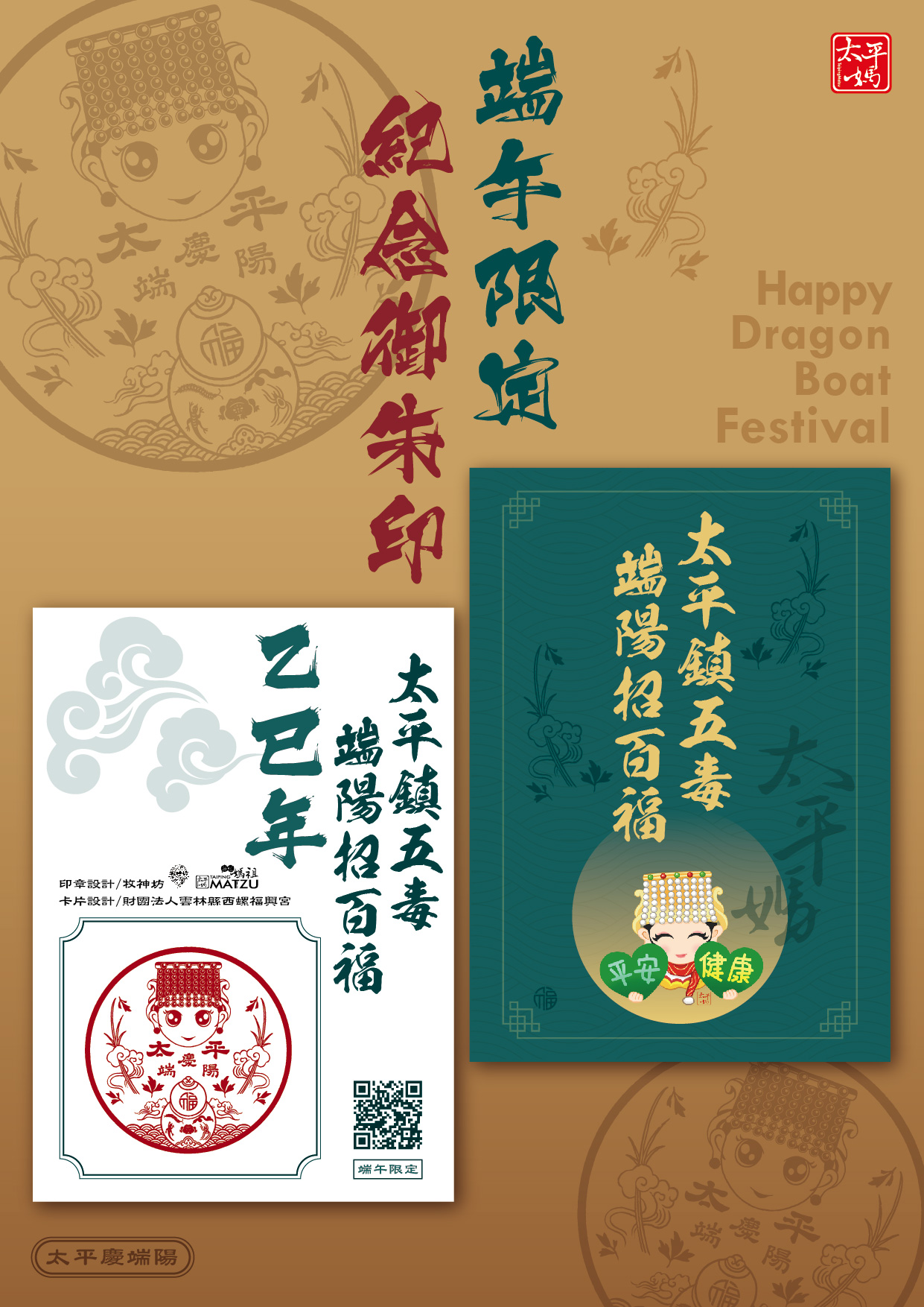 本宮力邀牧神坊結合太平媽與五毒符的元素設計印章,讓大家在端午節來宮參拜時,可以親自用印,獲得太平媽滿滿的祝福,護佑 #端午安康