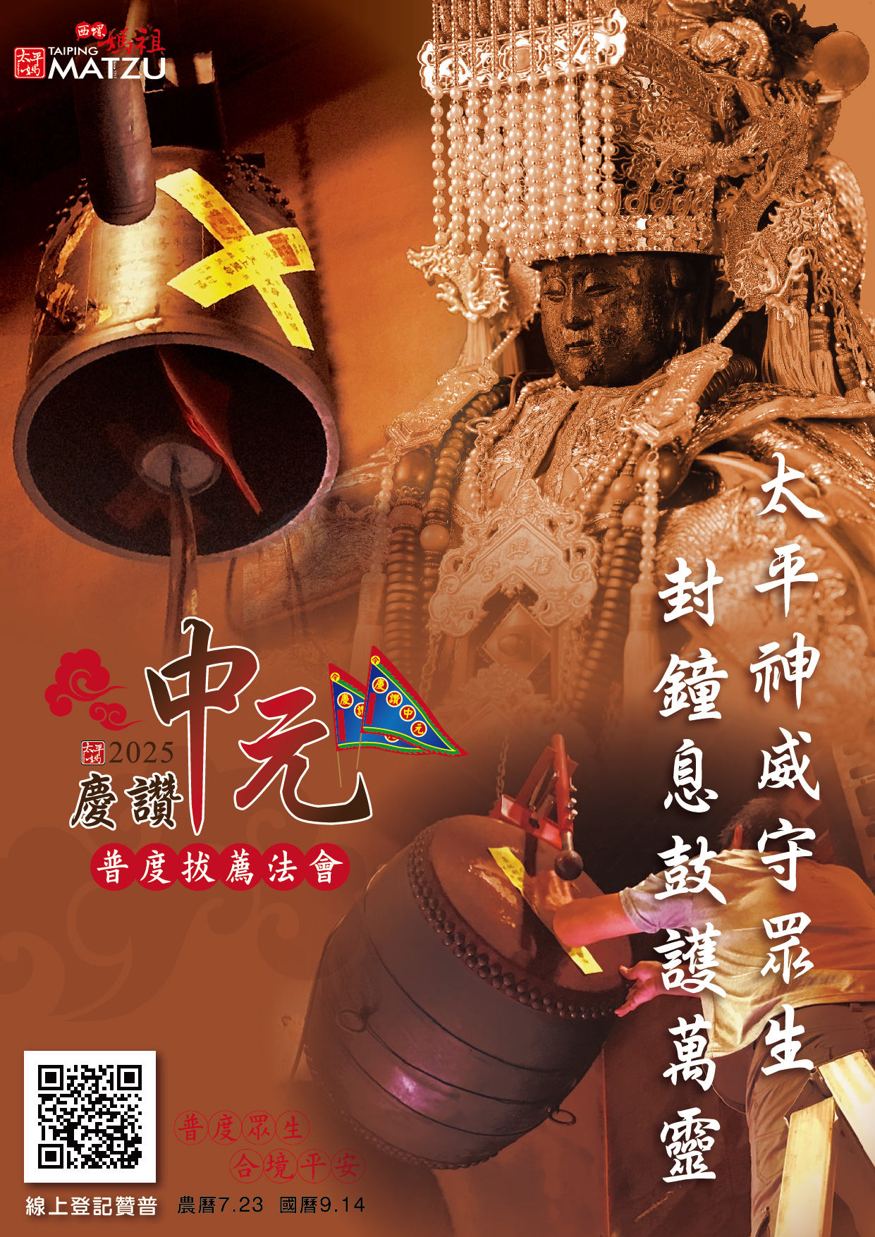 #鐘 、 #鼓 係迎神、送駕之重要禮器,具有號令兵馬護駕之作用,為護持太平媽 #慈悲護民 之精神,賑濟四生六道孤苦孤魂,本宮封鐘息鼓,並暫停燃放鞭炮以體恤有情眾生,祈願其於慈悲月安心領收供養,超薦拔度、解冤除障煉度轉生。