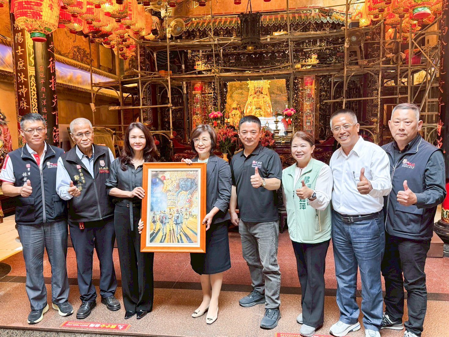 本宮特別致贈藝術家蘇慧棉老師所繪之【慈悲守護‧我的太平媽】蠟筆畫以及【稜轎腳祈平安】畫作授權之濁水溪守護神加持限定版乖乖、太平賜福醬油組,誠摯祝福蘇治芬董事長政躬康泰,持續造福鄉梓,為臺灣人民與農業發展之進步盡更多心力!