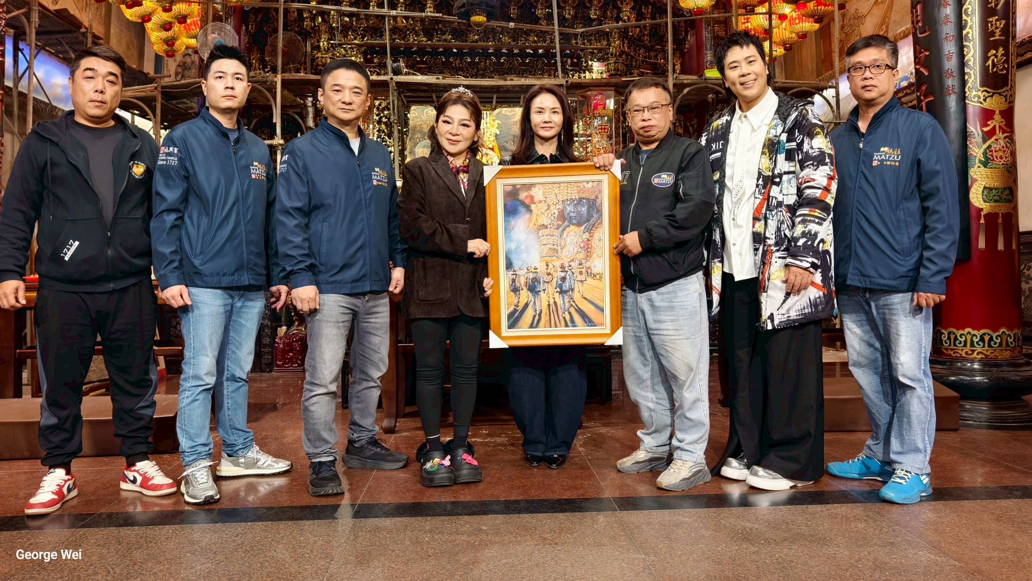 本宮 #董事長楊文鐘 、 #常務董事楊文祥 、 #藝術家蘇慧棉老師 以及本宮董監事、眾執事熱情接待,回贈太平媽蠟筆畫作 #慈悲守護ˍ我的太平媽 、 #太平媽祖x金柳將軍x積木組 與 #濁水溪守護神加持限定版乖乖 ,祝福王彩樺與邵大倫 #星途大展 、 所求所願皆能大降吉祥