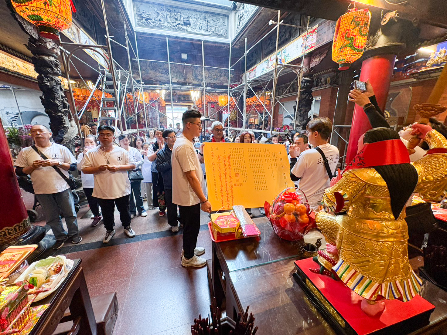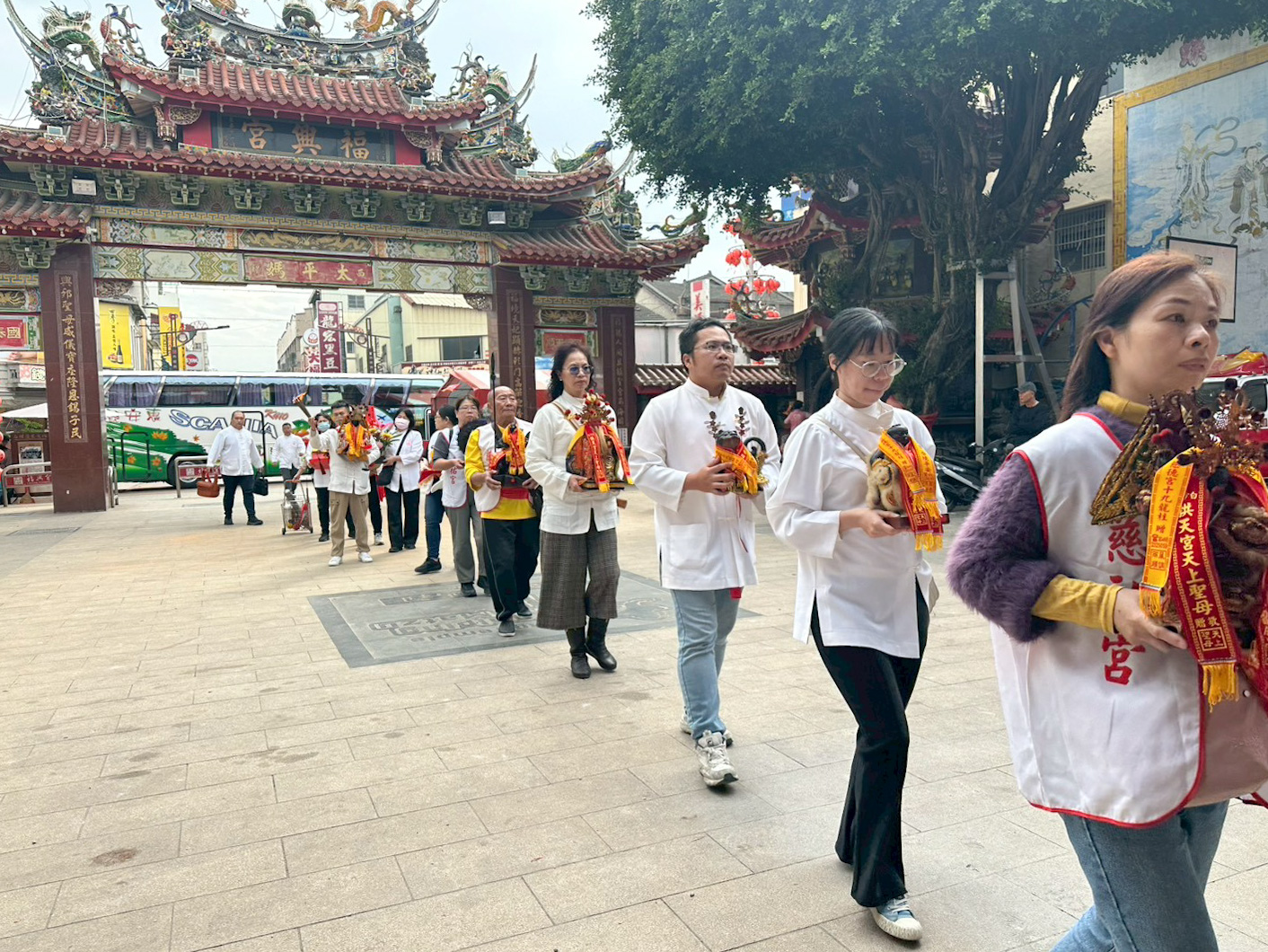 建廟主任委員 胡祖望、宮主張淑女率眾善信大德護駕天上聖母暨列聖尊神聖駕至本宮參香,誠心祈求太平賜福、諸事吉昌