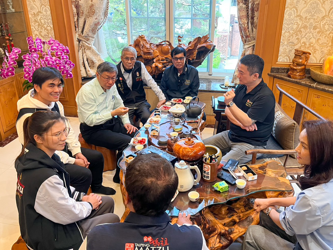柯文哲此行希冀傾聽地方民情、凝聚黨內向心力,至本宮參拜前,先到西螺弘農居拜訪環陞貨運、農產公司 #楊文祥 董事長、 #藝術家蘇慧棉老師 賢伉儷,雙方結識多年、席間相談甚歡,接下來他亦希望參與多場媽祖進香聖事,期待可以再與鄉親好朋友一起與神同行、祈願臺灣社會安定發展