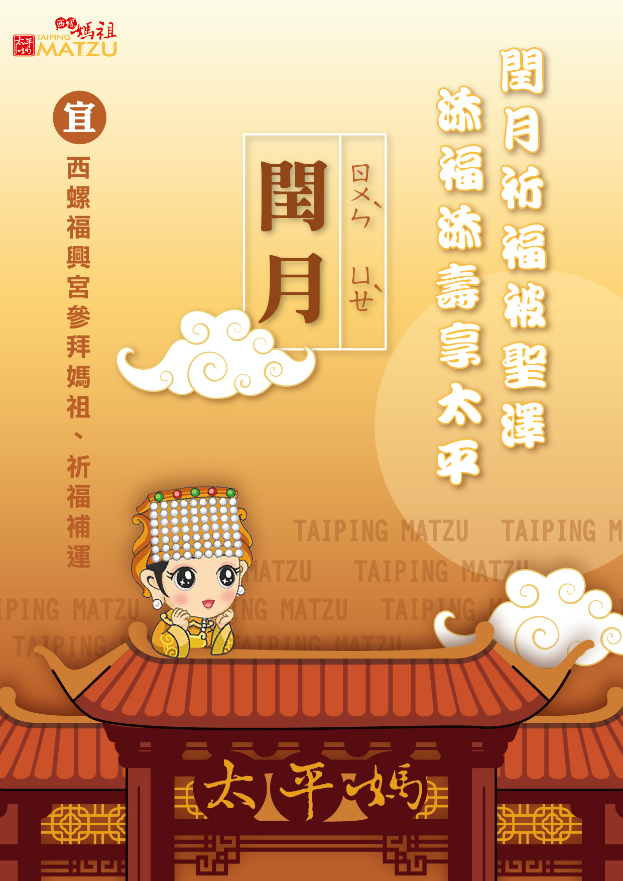 閏月將至, #西螺媽祖太平媽 祝大家諸事平安,歡迎大家至本宮參拜媽祖、祈福補運,為父母與家人、朋友默禱祈福。亦🉑登記贊普,落實冥陽兩利,發揚太平有愛的精神