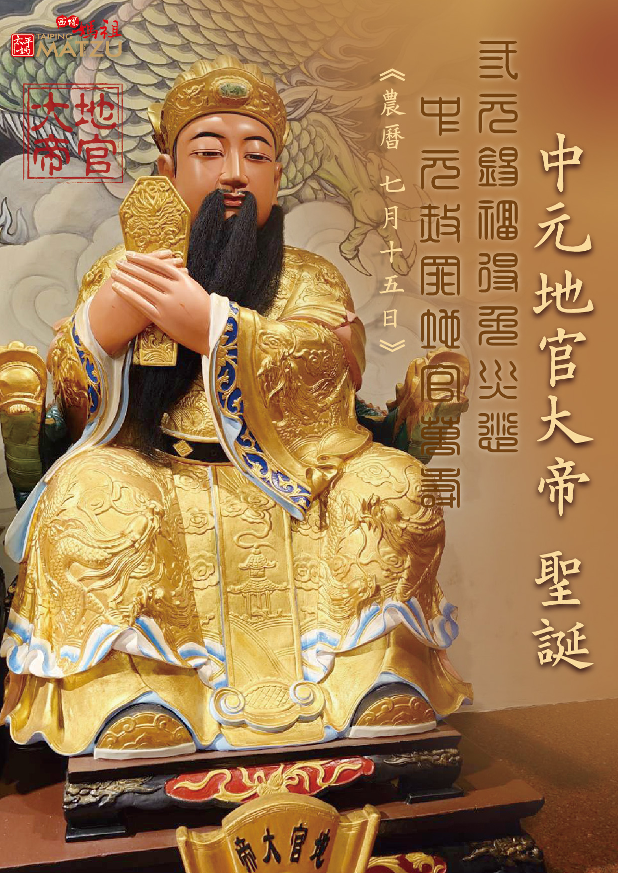 時逢中元,是為地官清虛大帝千秋寶誕,亦是臺灣各地辦理中元普度法會之高峰,爐下眾善信於於案前焚香禮拜時, 可誠心懺悔決心改過自新,伏祈地官大帝赦免我們的無心之過,亦可登記贊普,賑濟孤幽,共成大愛。