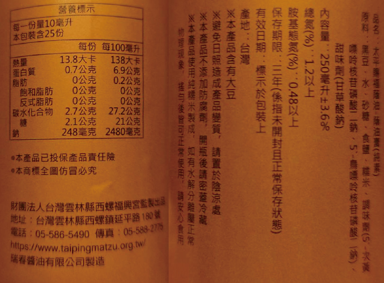 福興宮 x 瑞春醬油 聯手打造的「太平賜福醬油」。